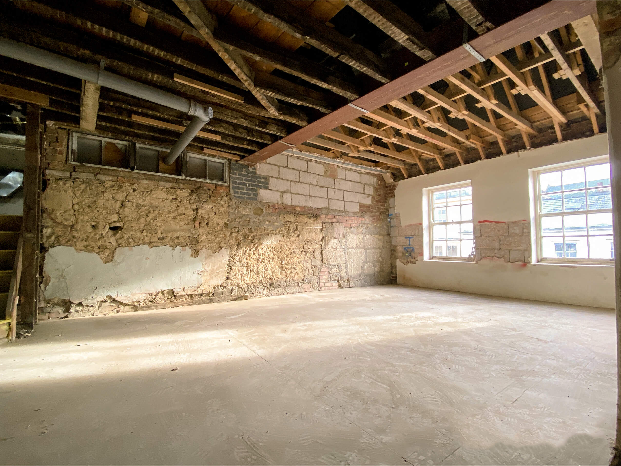 Since our last update, including the discovery of a medieval sub-cellar, works have focused on internal soft strip-out, sub-cellar clearance, and utility disconnections. Soft strip-out is now underway in Units 10–15, progressing from the upper floors downwards in preparation for refurbishment.